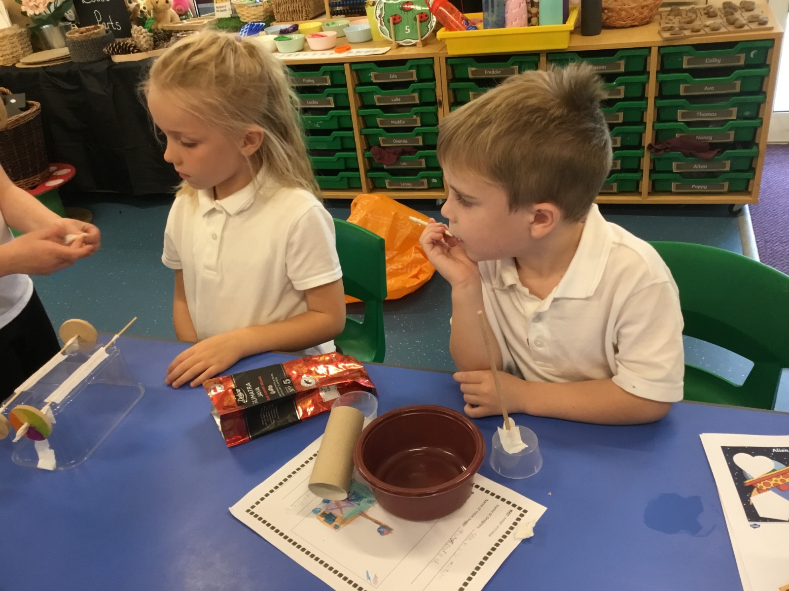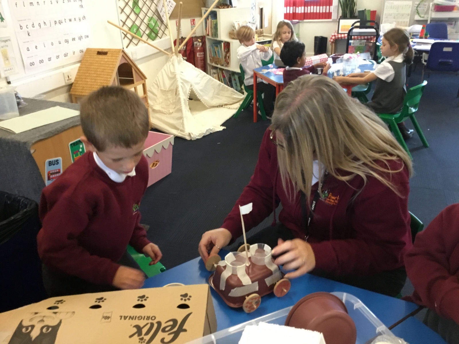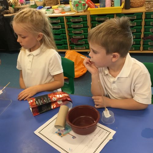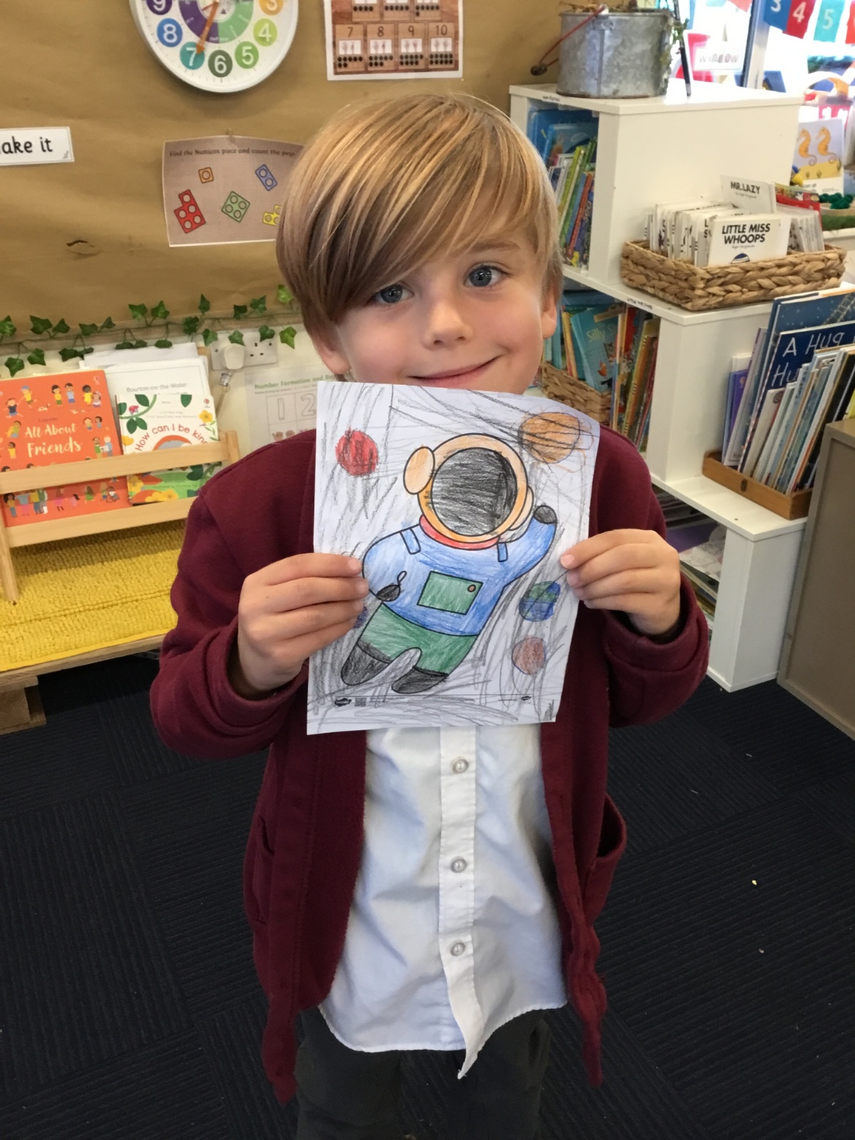 We have loved learning about space, making moon buggies, creating our own planets and compelting an investigation for a space suit. We have done lots of practical activites and some of our photos are below.